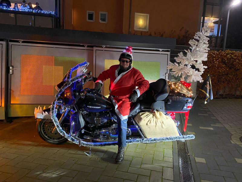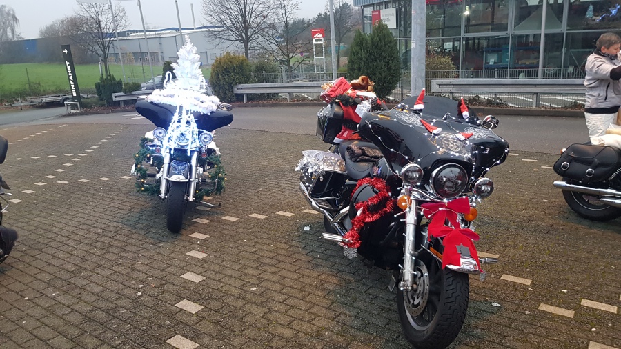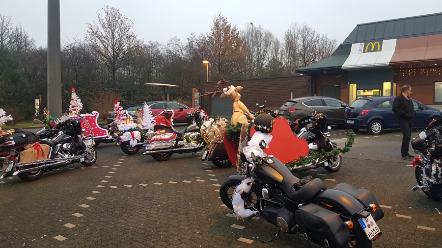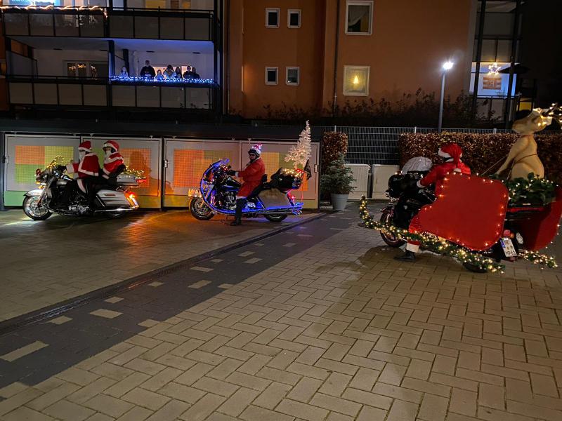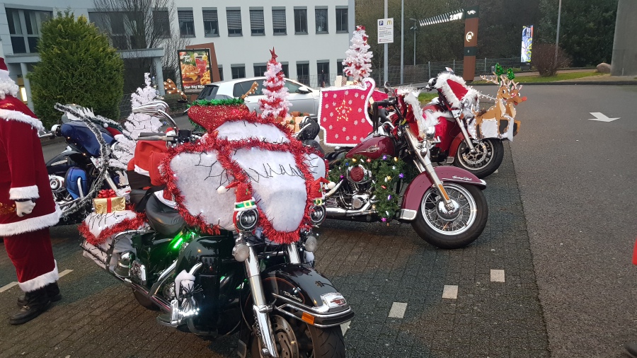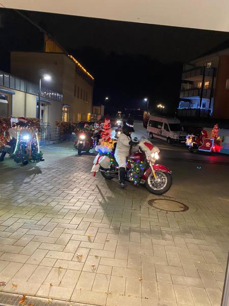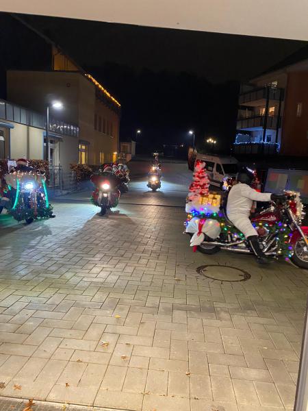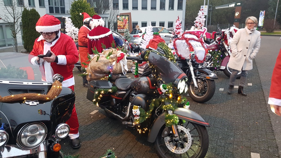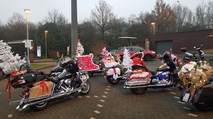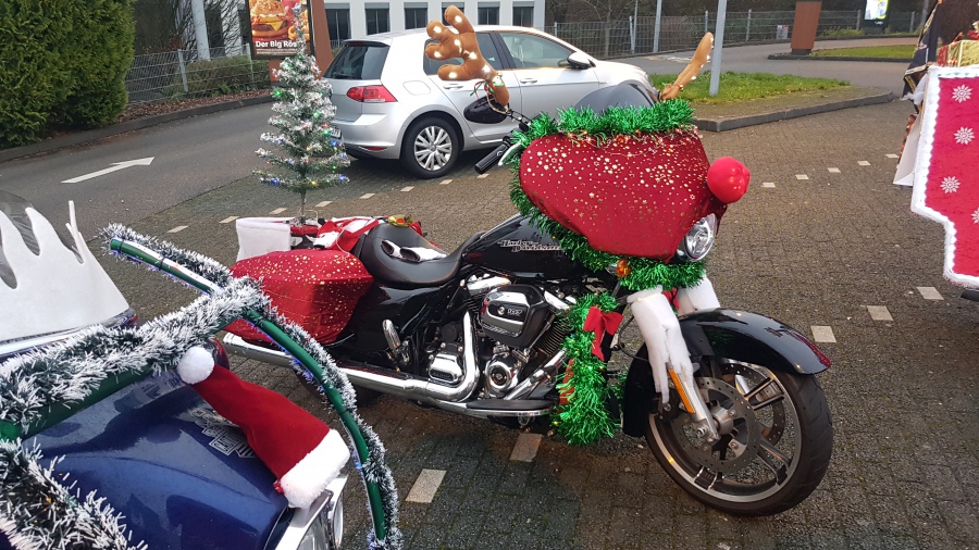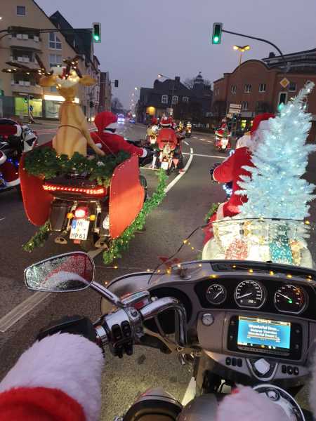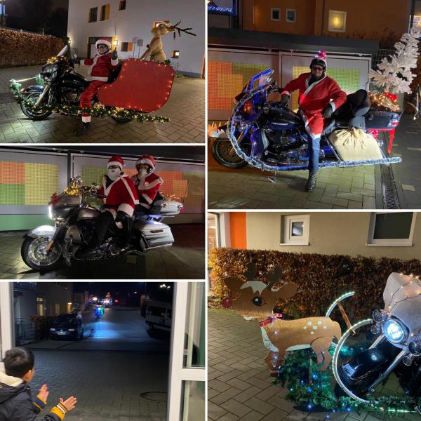 Der 2. und letzte Ride vor der Veranstaltung am 13.12.2020 fand am Sonntag ab 16 Uhr statt. Gestartet wurde in Haan und es ging über Hilden, Langenfeld usw. bis nach Düsseldorf in das Kinderhospiz Regenbogenland. 15 super geschmückte Harley gingen auf die Tour und alle Beteiligten hatten einen Riesenspaß. Thorsten führte uns durch Fußgängerzonen und Einkaufsstraßen. Die Menschen jubelten uns zu und waren alle glücklich, sowas Schönes zu sehen.