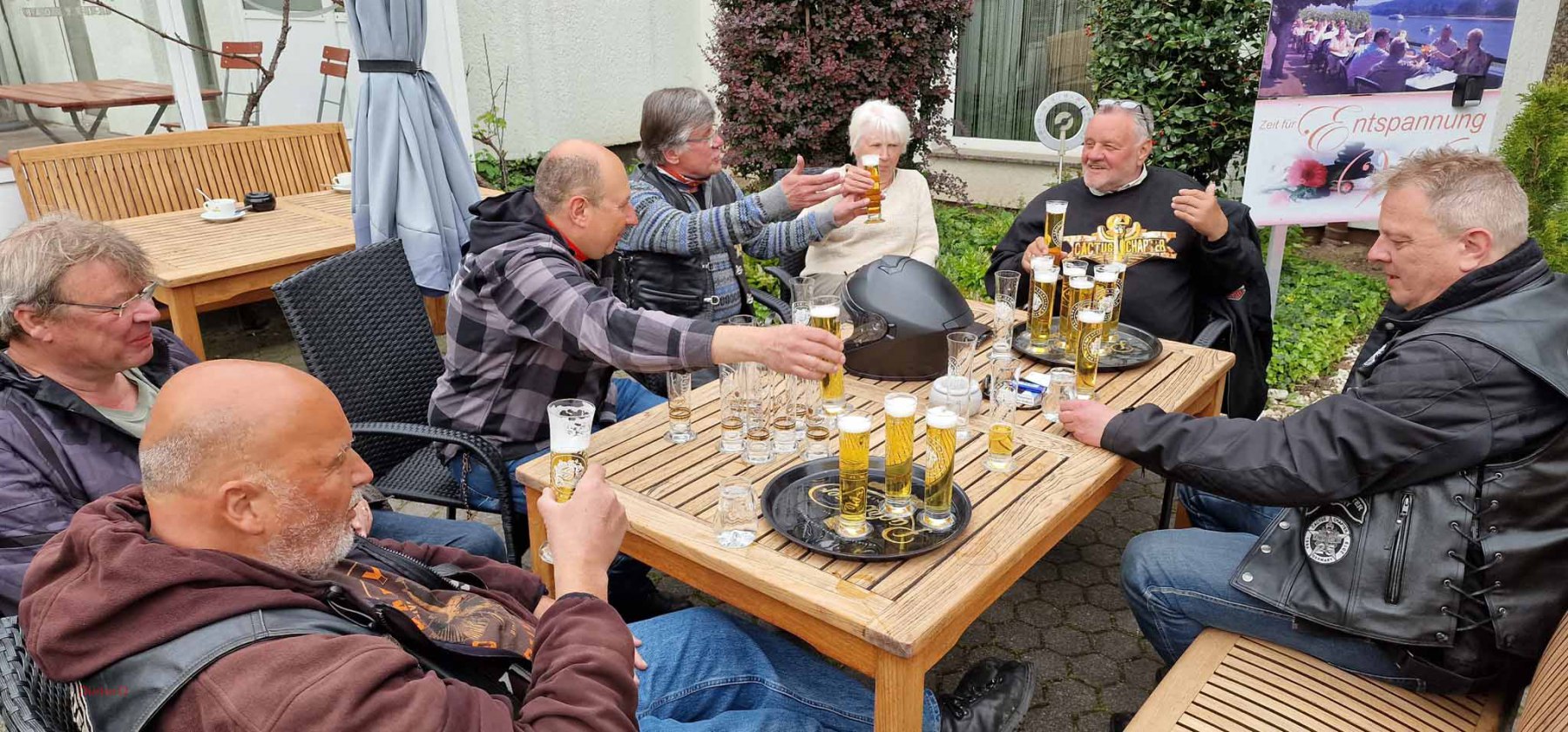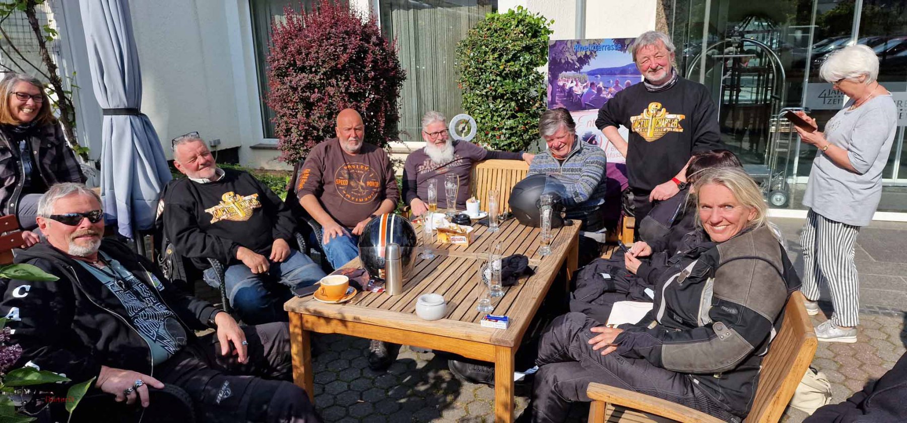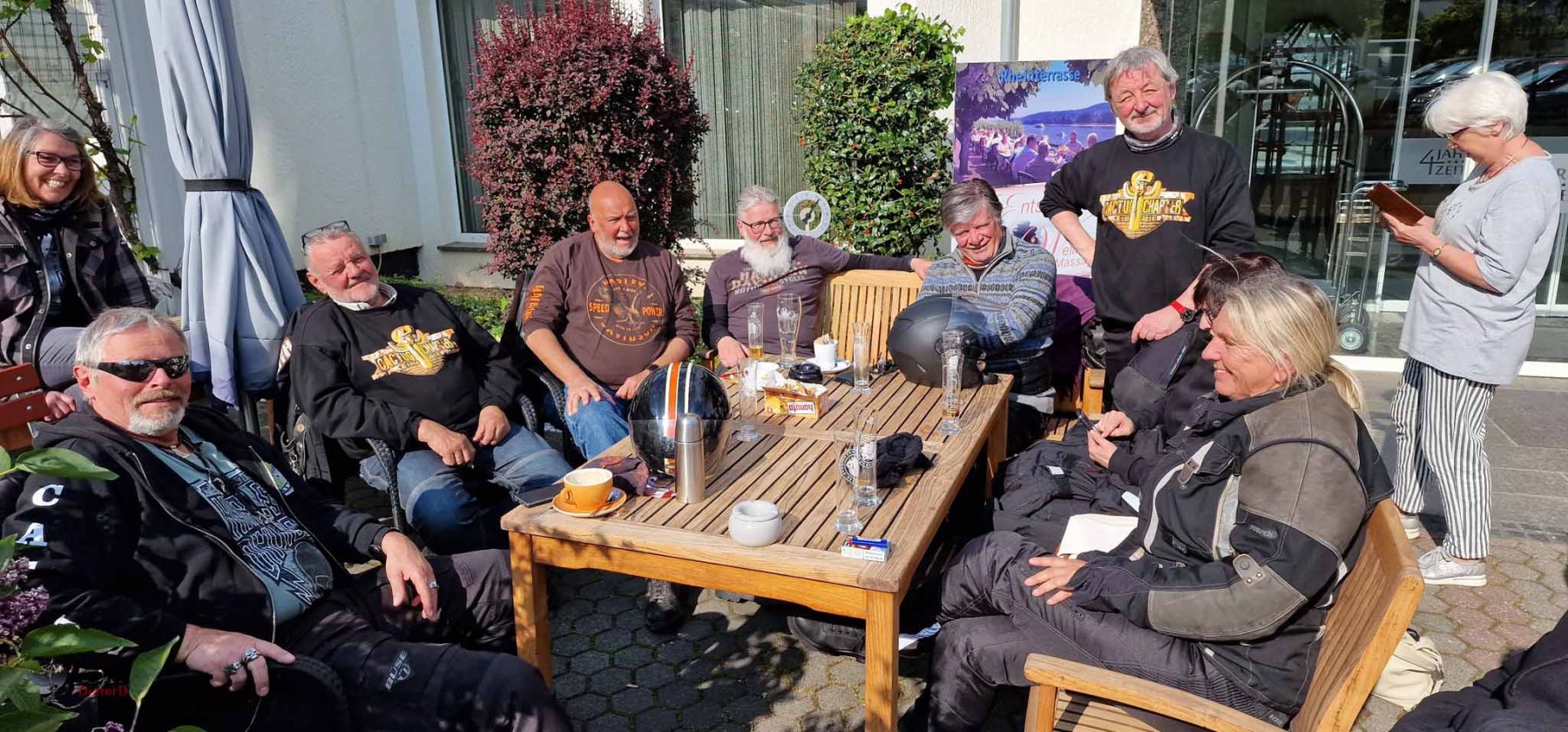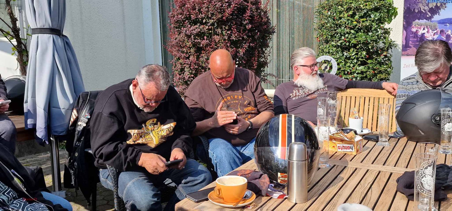 Am letzten Wochenende fand die diesjährige Anfahrt nach Bad Breisig statt. Es war ein super Wochenende mit schönem Wetter, gutem Essen und allerbester Laune. Freitag fand die Anreise statt. Entweder individuell oder in der Gruppe mit Jo als Road Captain. Bis 19 Uhr waren jedensfalls alle im Hotel Vierjahrezeiten angekommen und konnten sich auf das leckere Buffet stürzen. Der Abend klang dann in der Hotelbar gemütlich aus. Samstag gab es eine Rundfahrt, die wohl noch etwas frisch war aber trotzdem allen viel Spaß gemacht hat. Einige Frauen und meine Wenigkeit zogen es vor, die Stadt zu erkunden und fanden dabei einen wunderbaren Flohmarkt.