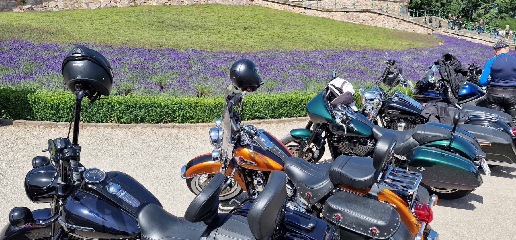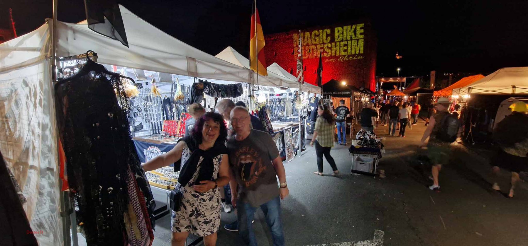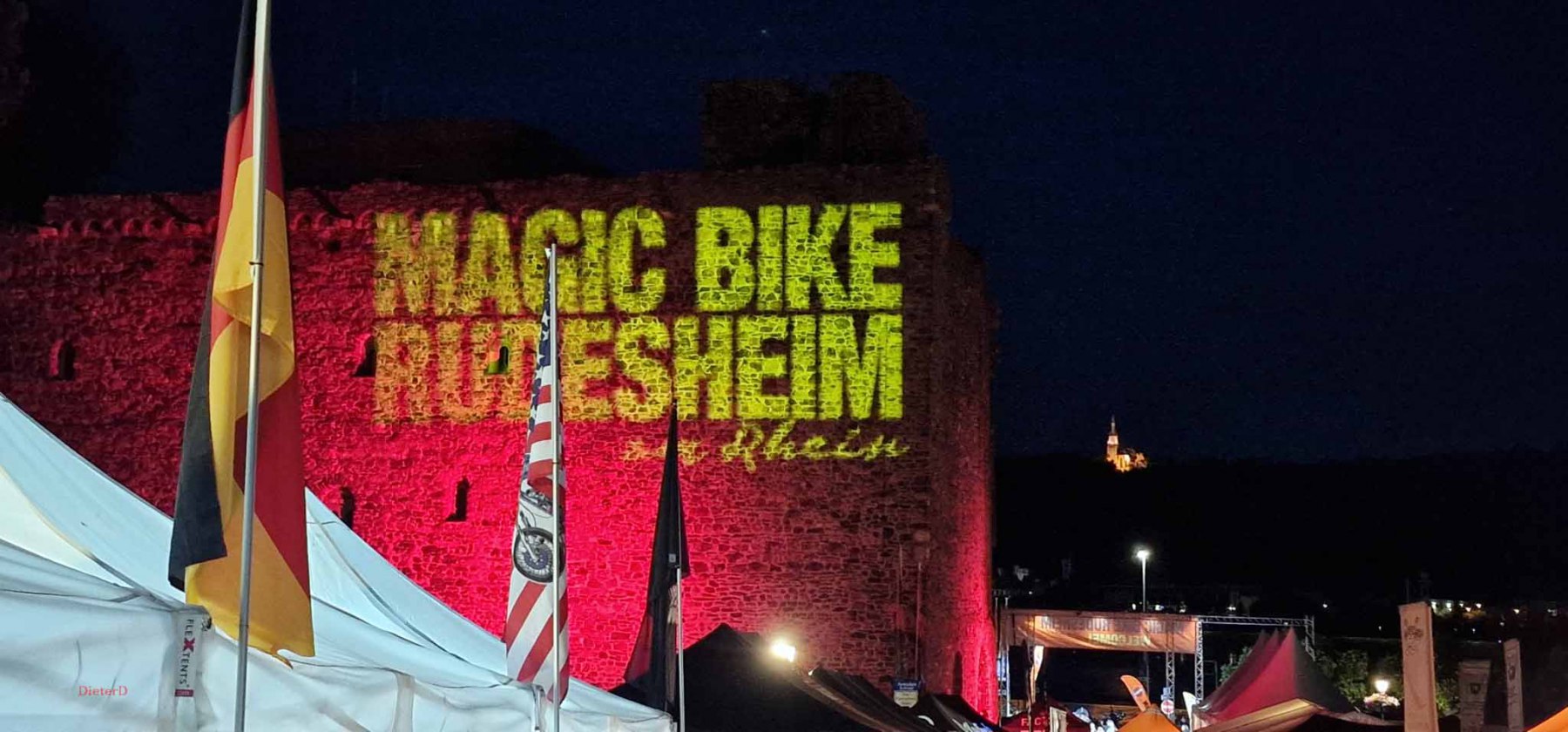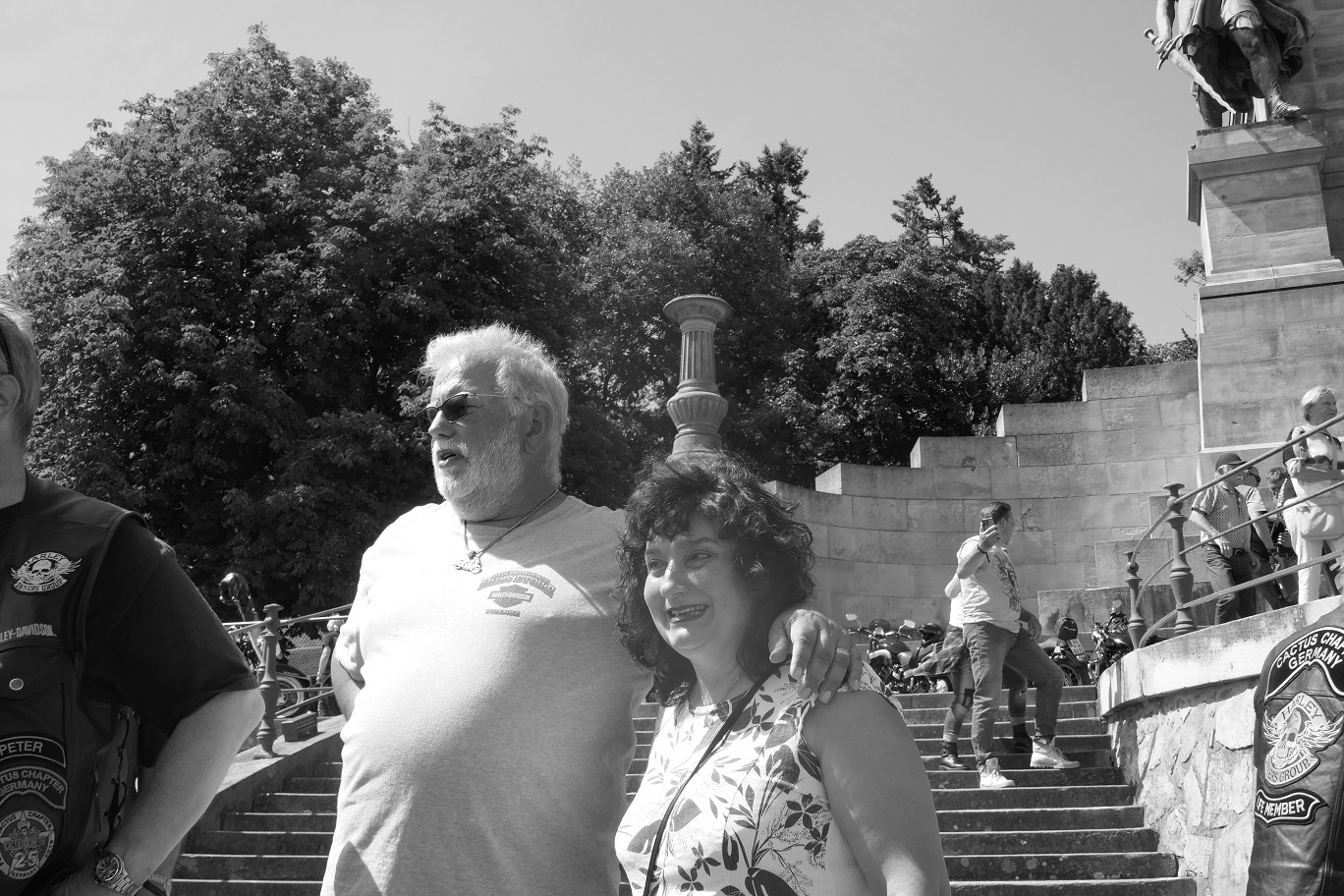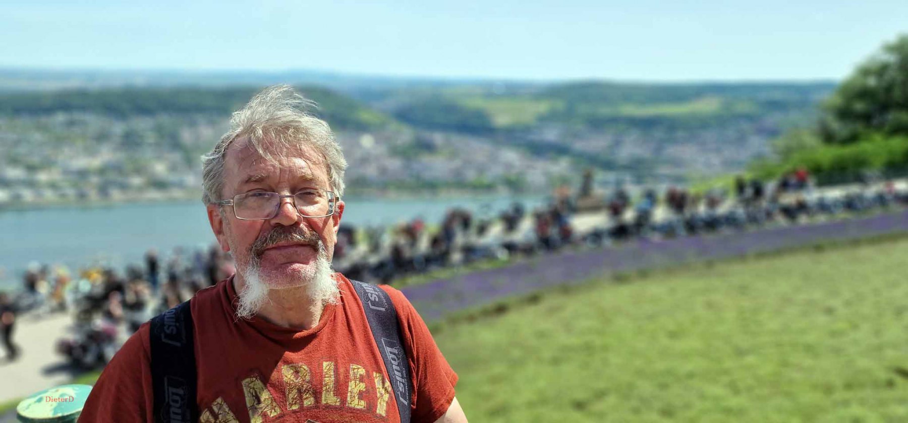 Tag 2:Nach einem gemeinsamen Frühstück unter unseren Bäumen fuhren die Biker zur Aufstellung für eine geführte Rundfahrt. Unser Director Achim verließ uns leider in Richtung Bielefeld. Emel und ich fuhren durch den Rheingau und füllten in einem wunderschönen Weingut die Riesling Vorräte auf. Anschließend ging es zum Niederwalddenkmal. Dieses war auch Endpunkt der geführten Touren und somit kamen wir wieder alle zusammen. Die Organisatoren der MBR hatten eine Sondergenehmigung für die Harley´s und alle durften für ein Fotoshooting direkt vors Denkmal fahren. Eine superschöne Sache mit toller Aussicht. Am Abend gab es eine Pizza in der Pizzeria am Campingplatz und dann wieder die Tour übers Festival.