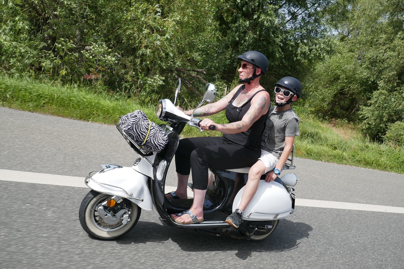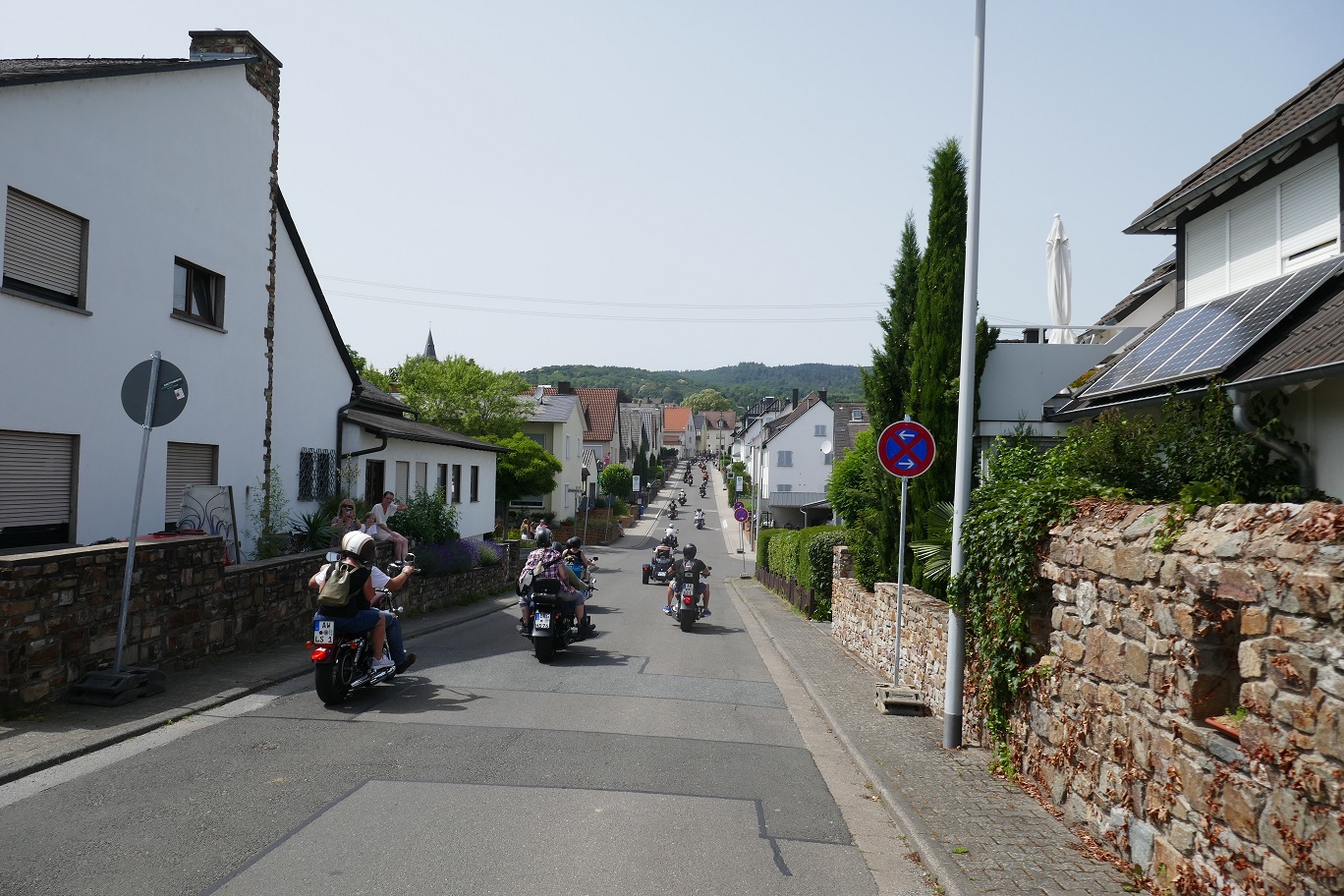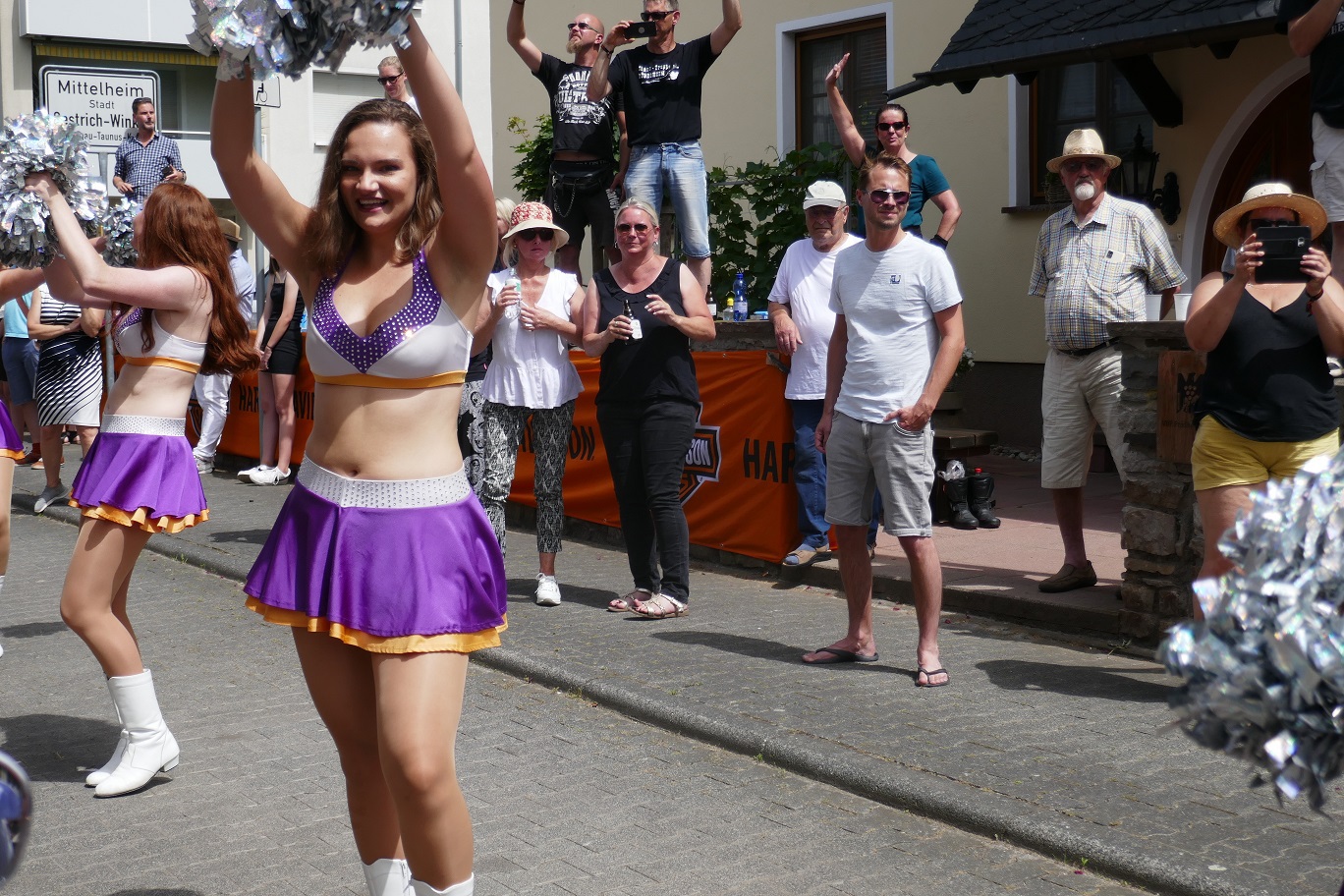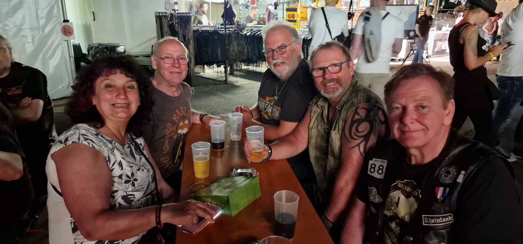 Wir trafen uns bei Erika in Langenfeld zu einem gemeinsamen Frühstück. Anschließend fuhren die Biker unter Führung vom Road Captain Andreas eine schöne Strecke nach Rüdesheim. Emel und ich hatten den Material- und Verpflegungswagen und wir fuhren über die Autobahn nach Rüdesheim um dort alles für die Biker und deren Ankunft vorzubereiten. Ziel war der Fass-Campingplatz Rheingau524 in Geisenheim. Dort waren 2 Fässer und 3 Hütten reserviert. Der Platz war ein Glückgriff. Alles pikobello sauber, Blick auf den Rhein und direkt vor unserer Hütte 2 große Bäume für den Schatten. Die Bäume haben uns über das heiße WE gerettet ! Nach Ankunft der Biker und einem kühlen Umtrunk ging es das 1. Mal nach Rüdesheim zum Festival. Auf verschiedenen Bühnen gabe dort Musik, eine Händlermeile und natürlich jede Menge Mopeds. Doro aus Düsseldorf war Star des Abends aber nur HaJo konnte das „Geschrei“ länger als 3 Lieder ertragen :-).. wir sind halt älter geworden.