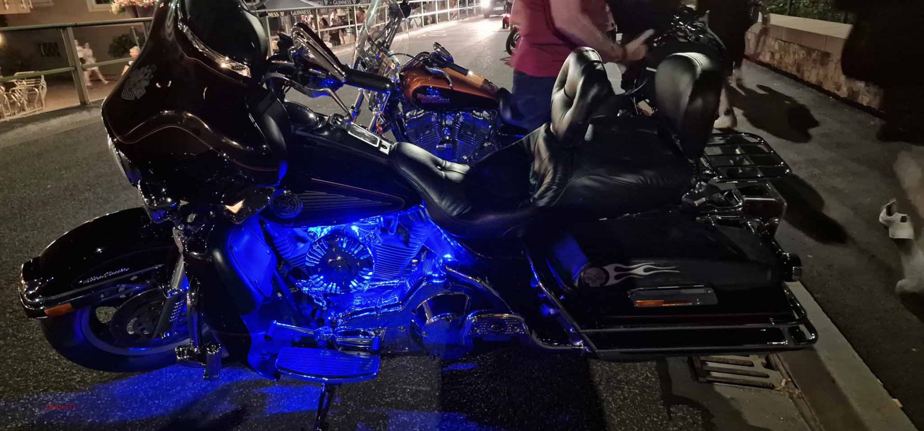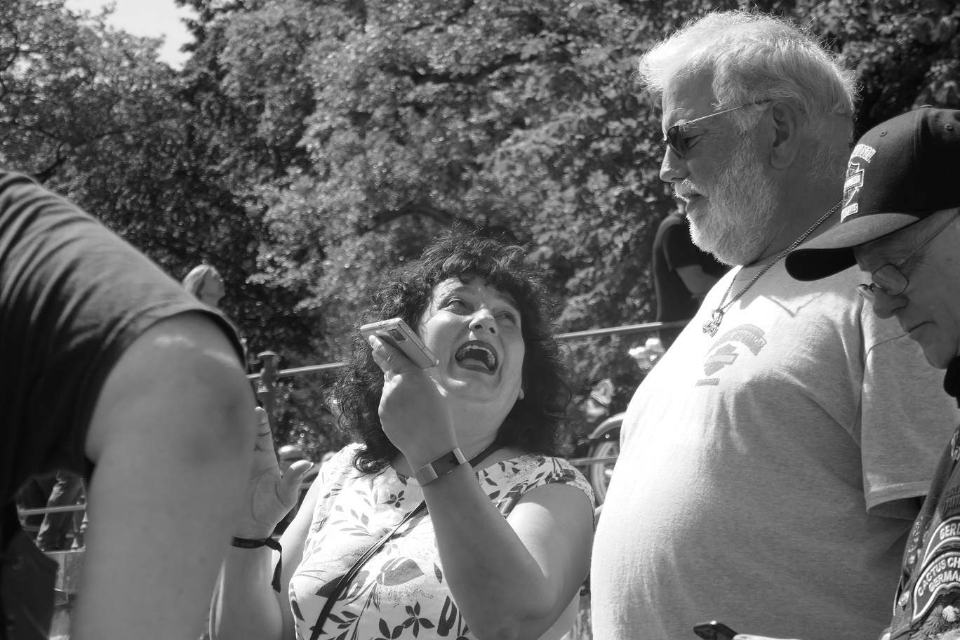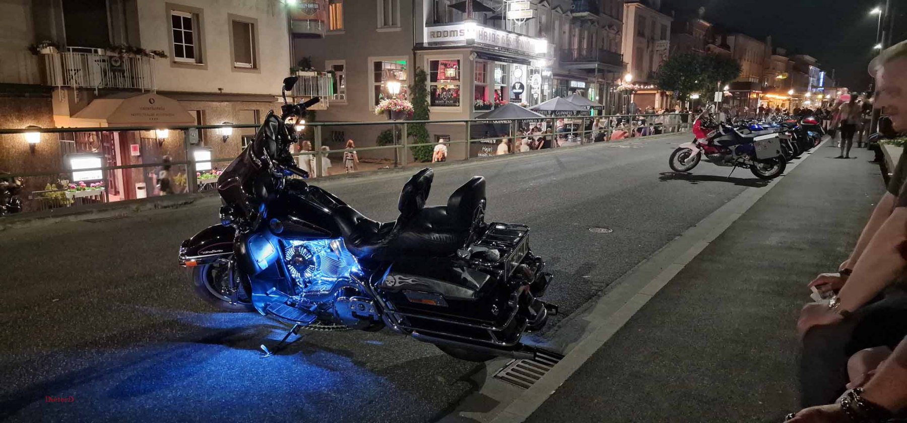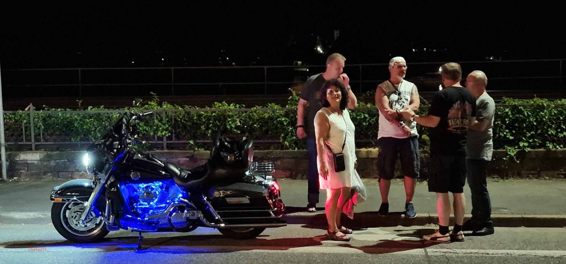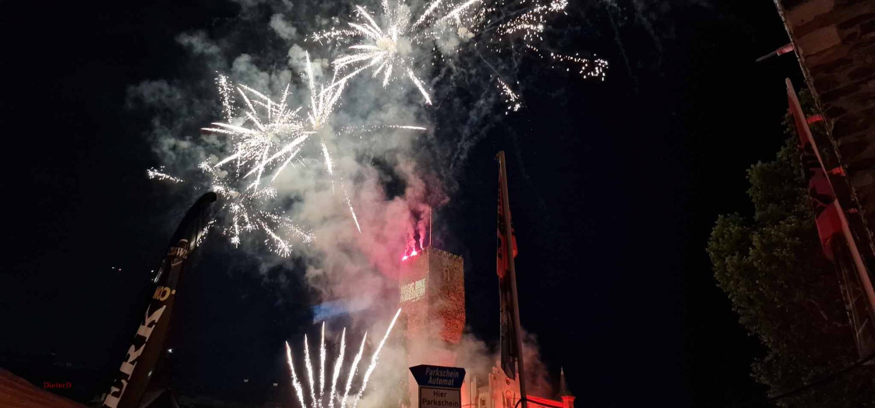 Der Samstag wurde extrem heiß und es hatte kaum jemand Lust an der großen Parade teilzunehmen. Das ging wohl vielen Bikern so und deshalb fiel die Parade auch entsprechend kurz aus. Von uns fuhr nur Harald mit und seine schönen Fotos zeigten, wie toll die Rundfahrt war und wieviele Menschen am Straßenrand auf die Parade warteten. Der Rest unserer Gang blieb unter den Bäumen und genoß den Tag mit vielen, kühlen Getränken. Am Nachmittag fuhren Gerd und ich zum Edeka und kauften für einen gemeinsamen Grillabend ein. Es wurde ein schönes, leckeres Menue :-). Im Anschluss dann mit vollen Bäuchen wieder zum Festival. Dort war richtig was los, tolle Stimmung und tausende Motorräder. Den krönenden Abschluß bot dann das große Feuerwerk um 23 Uhr. In dem Video (was noch kommt) werdet ihr sehen, was man gezündet hat. Feuerwerk im Rhytmus der Stones, Suzie Quattro usw. herrlich.