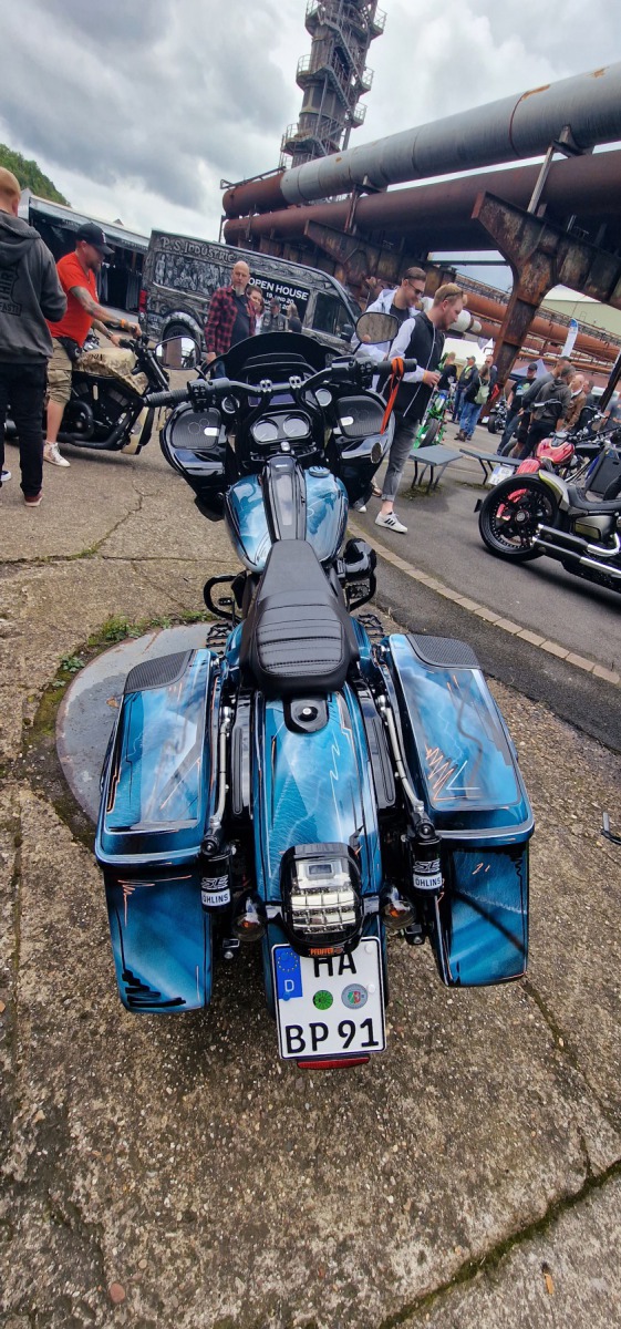 Letztes Jahr waren wir auch zum Ruhrpottmeeting und haben geschwitzt und wegen der Hitze gestöhnt…. Dieses Jahr war es anders, es regnete und die Wettervorhersage brachte auch keine neuen Hoffnungen. Es gab nur vereinzelt mal trockene Zeiten und trotzdem war der Besuch und die Veranstaltung wieder toll und interessant. Viele Dealer, Zubehörhändler, Bekleidung, Schmuck, Food and Drinks usw. waren vorhanden. Eine große Bühne mit toller Livemucke ebenfalls. Die Prämierung der schönsten Bikes musste im strömenden Regen durchgezogen werden. Für die Veranstalter sicher ein Desaster, weil nicht viele Gäste dort waren und viele auch früh wieder abfuhren. Ein Highlight war die Präsentation der neuen CVO Street Glide mit dem neuen 121er Motor. Wer knapp 47 große Scheine übrig hat, sollte sich dieses geile Moped mal ansehen. Die modernste Harley zur Zeit ! Natürlich gab es auch viel altes Eisen, Umbauten und Raritäten. Trotz des Regens hat sich der Besuch gelohnt und wenn 5 Cacteen es gemeinsam machen, sowieso 🙂