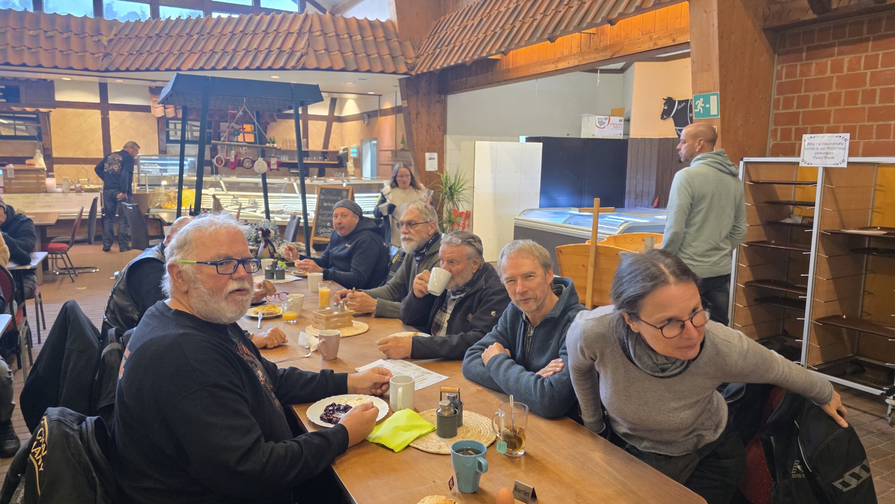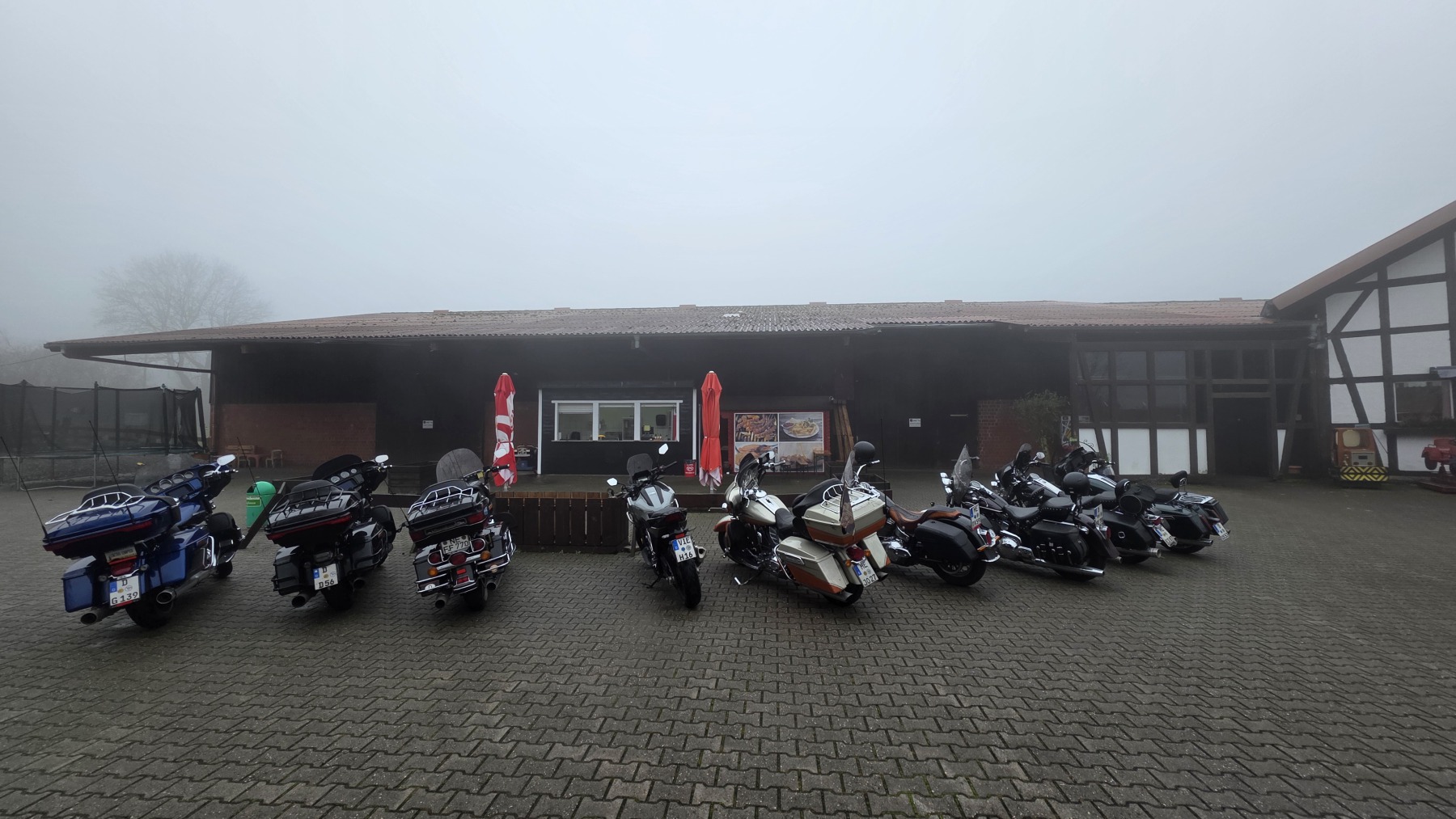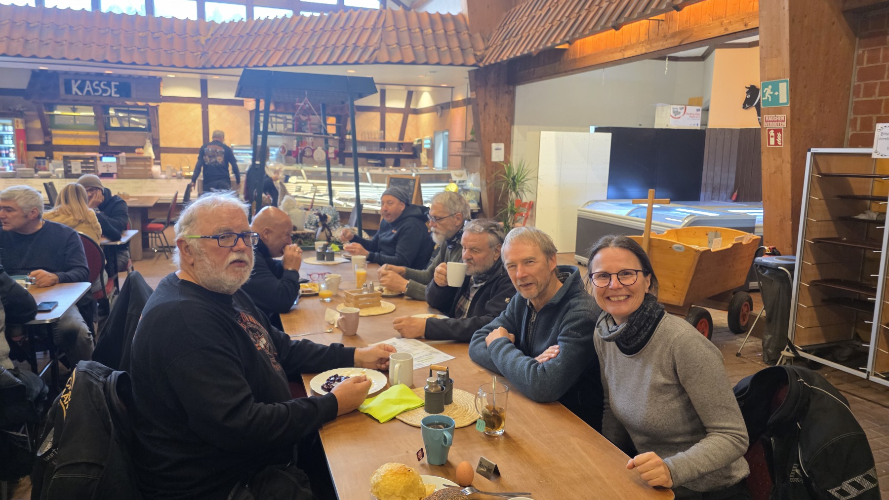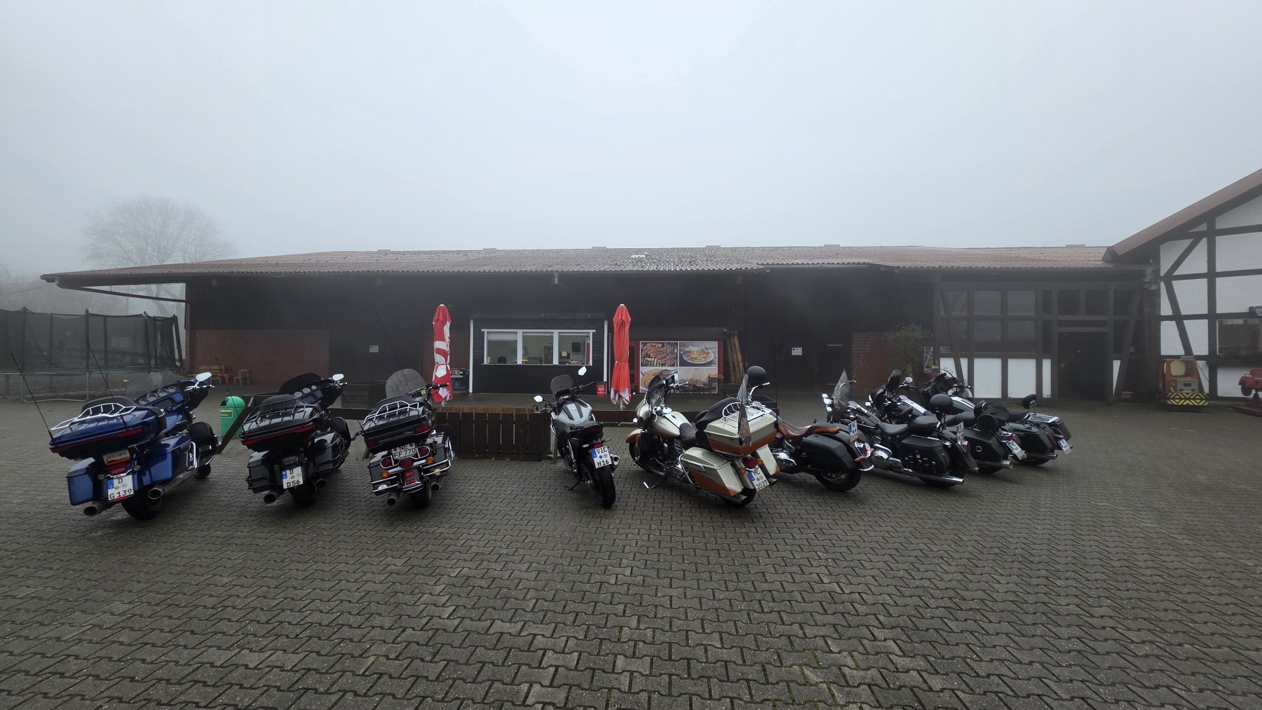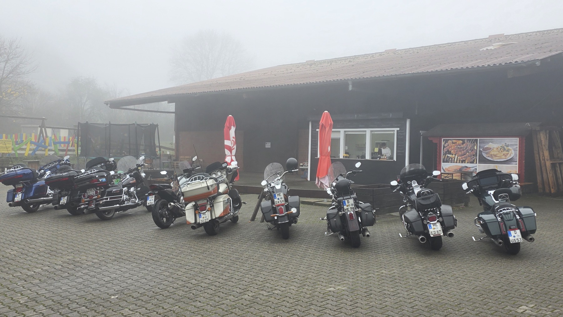 Am Sonntag fand die Scheisswettertour 2025 bei wirklichem Scheisswetter statt :-). 10 Cacteen auf 9 Bikes waren trotzdem dabei und hatten Spaß. Christoph hat es sich nicht nehmen lassen und kam mit seiner flatschneuen Street Glide zur Tour. Jetzt ist diese das 1. mal schön dreckig. Bernhard fand trotz Nebel seine geplante Strecke und brachte uns sicher zu heißen Waffeln, heiße Suppen, Schaschlik und leckerem Frühstück. Hier ein paar Fotos und ein Dank an Wolf, der die Fahraufnahmen beigesteuert hat.